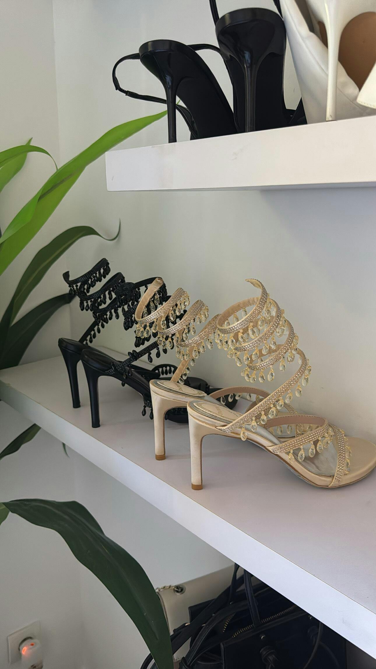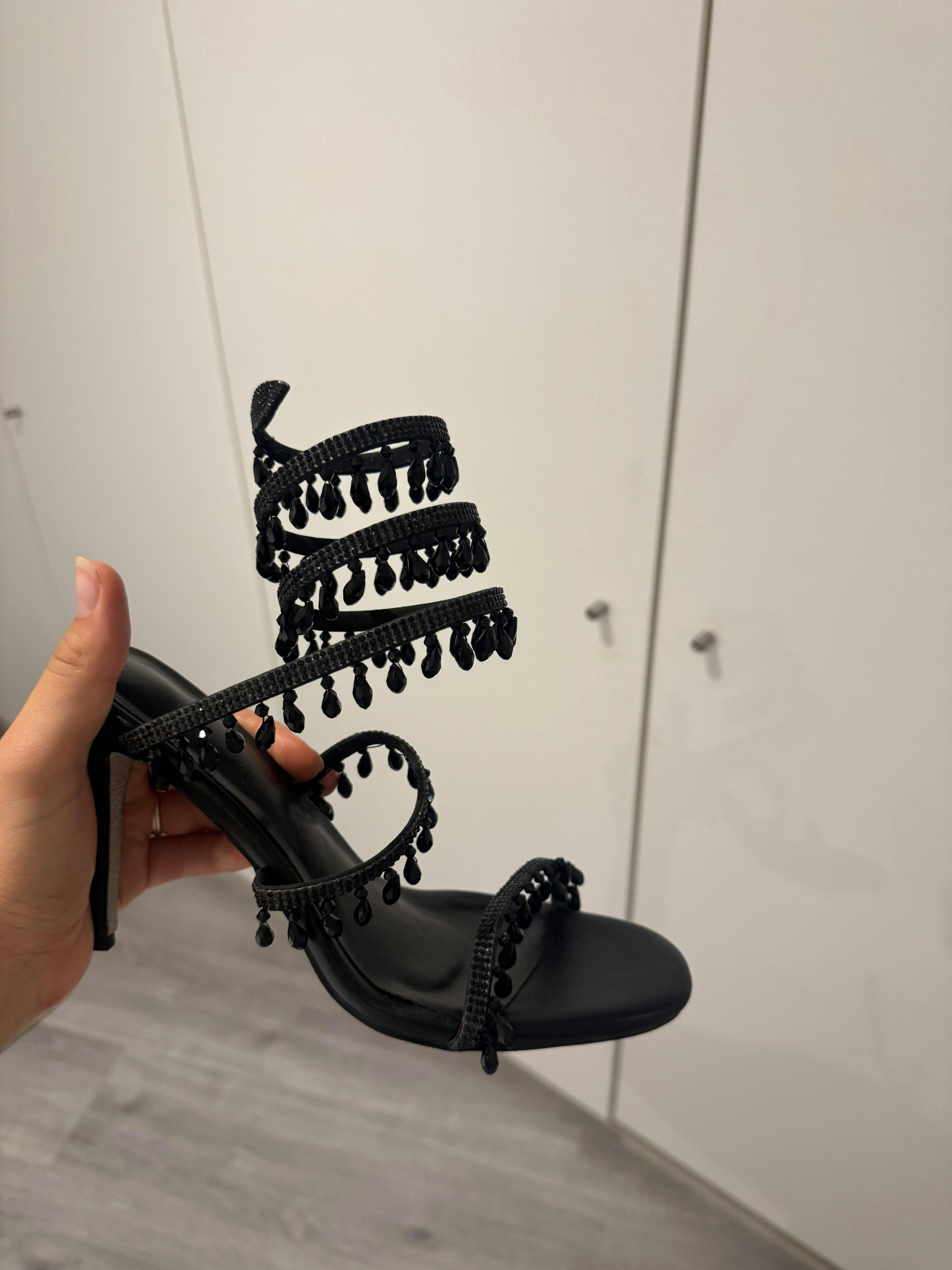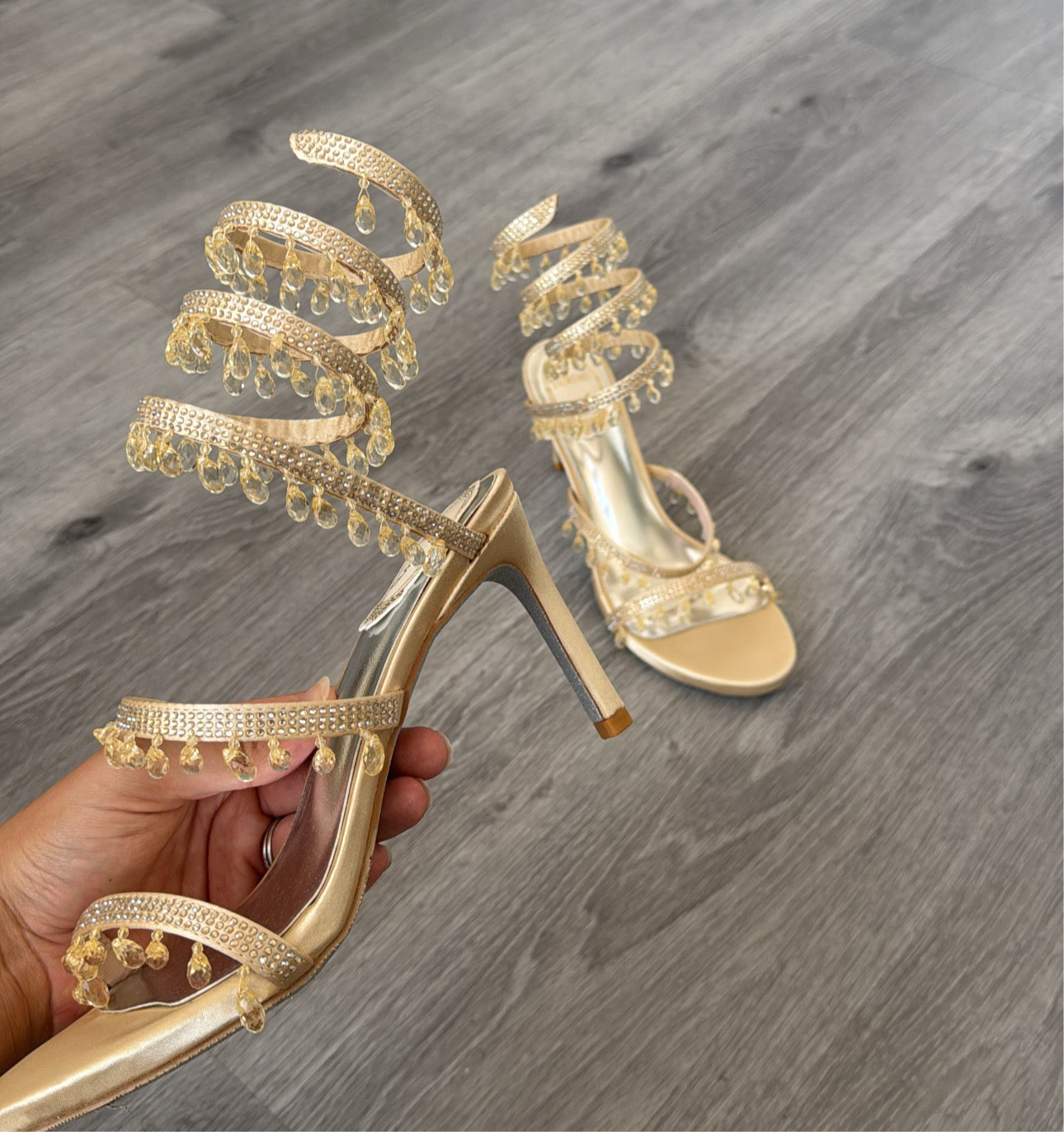 Un talon inspiration serpent et perlé entièrement façonné à la main dans nos ateliers.