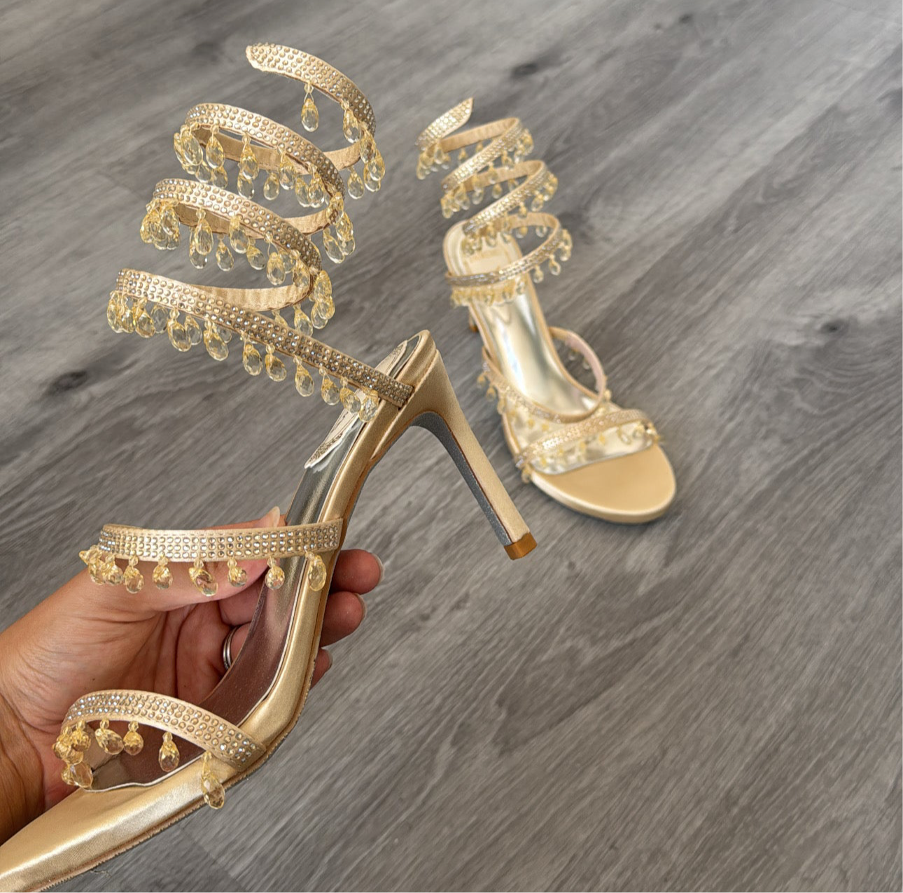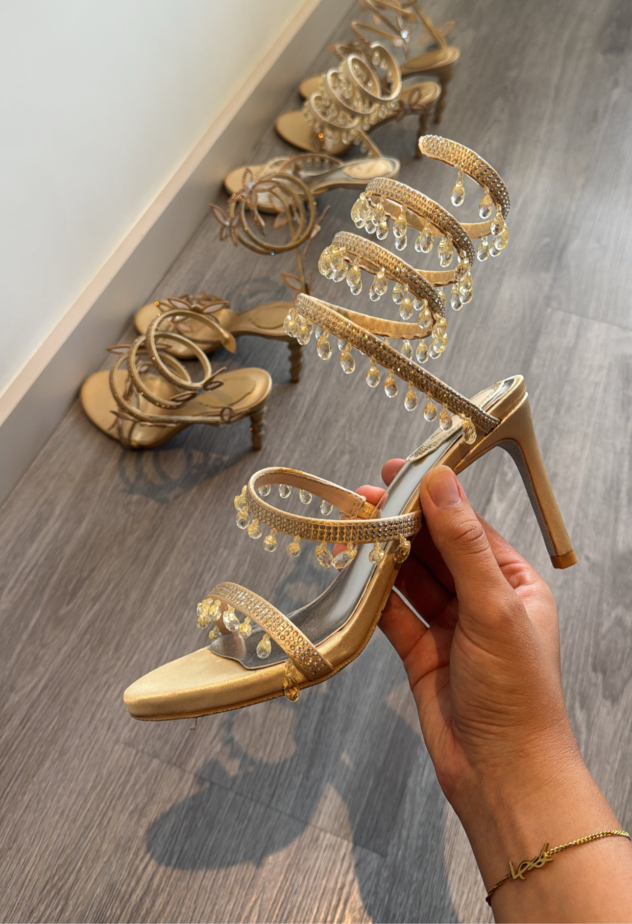 Un talon inspiration serpent et perlé entièrement façonné à la main dans nos ateliers.