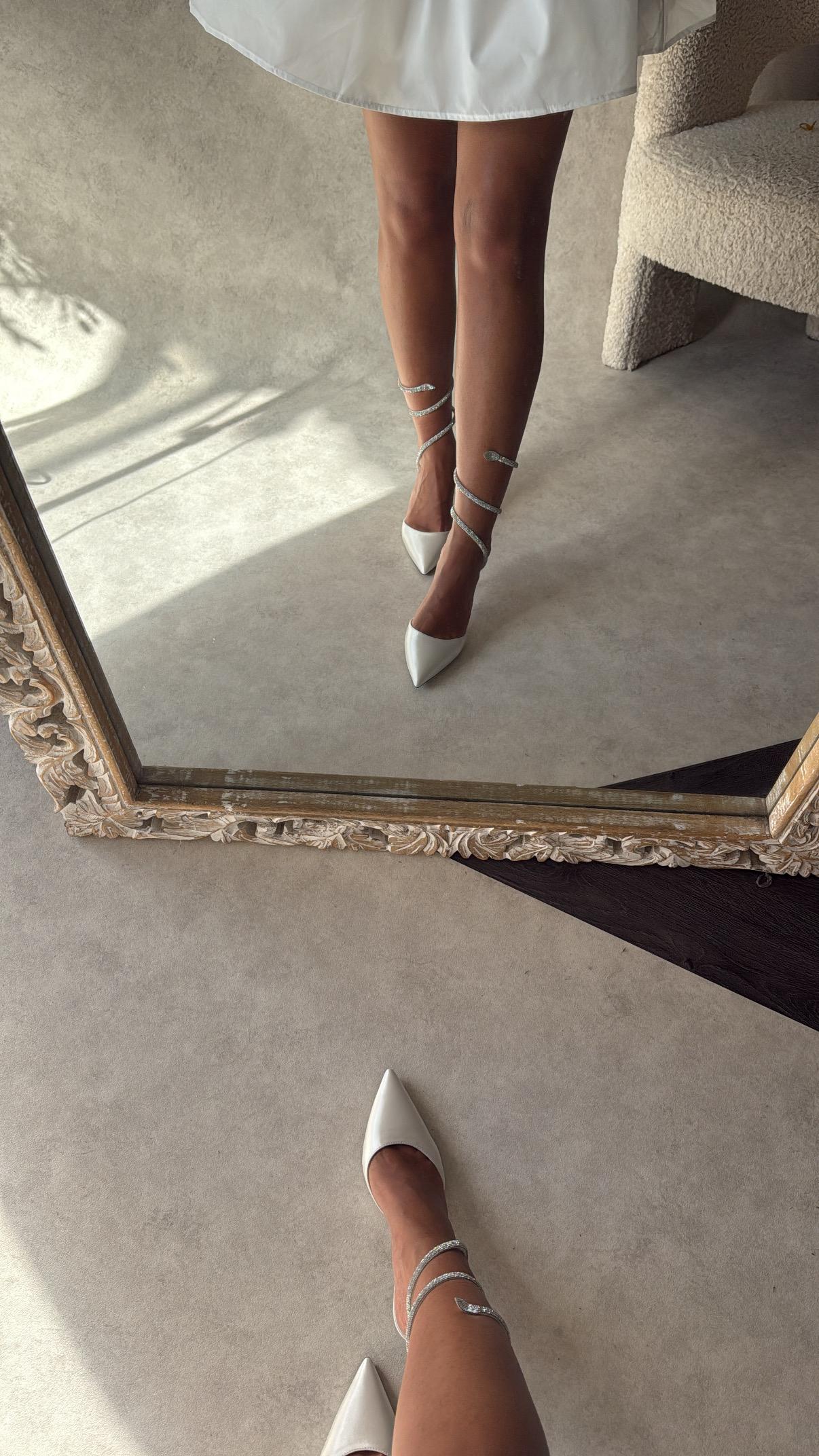 Un talon satiné entièrement façonné à la main dans nos ateliers.